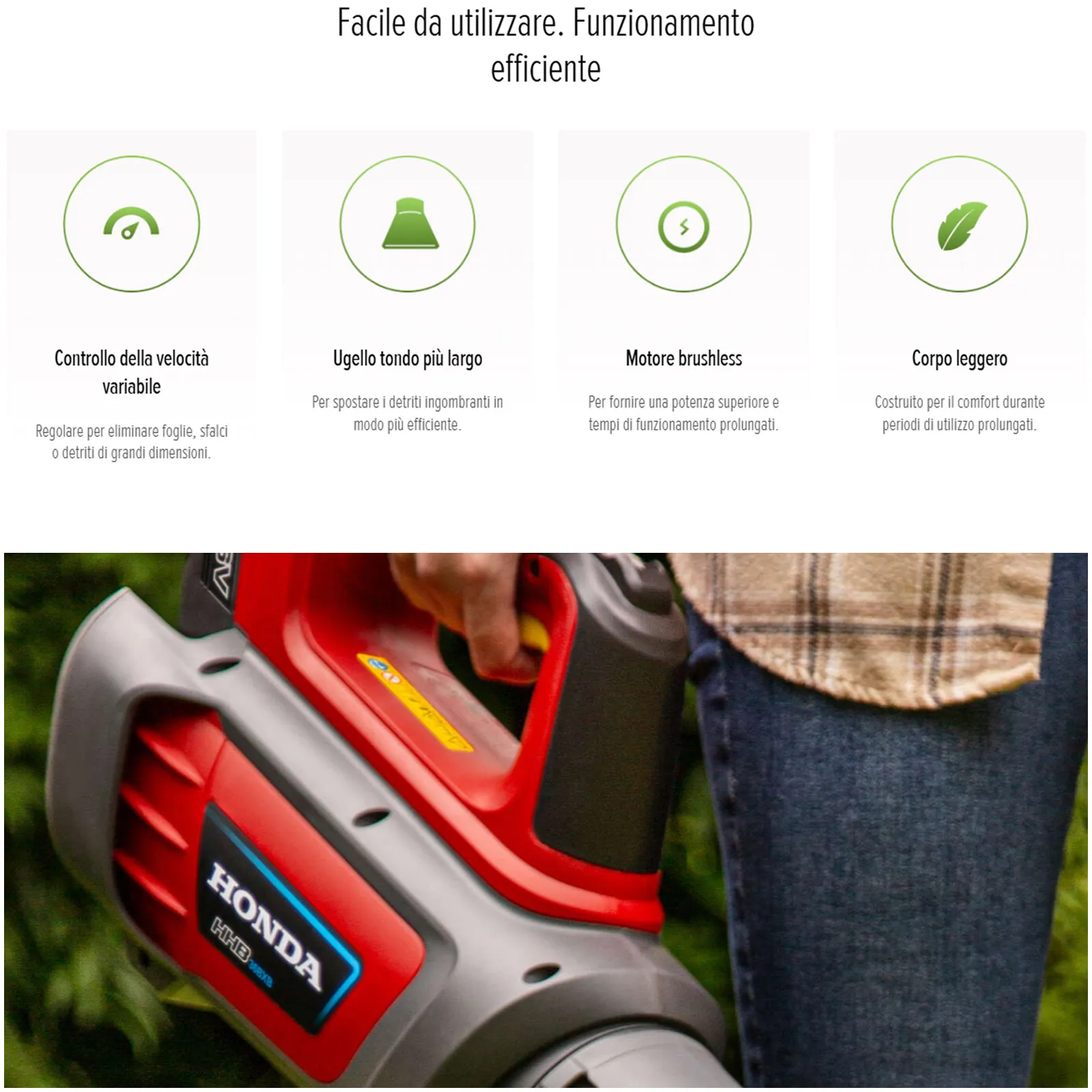 • Batteria Intercambiabile: Compatibile con altri attrezzi Honda 36V
