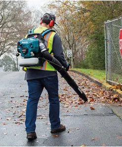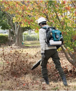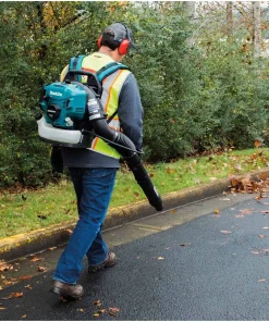 Soffiatore a zaino ergonomico Makita EB5300TH con motore 4 tempi ad alta efficienza con bassi consumi di carburante e livelli di rumorosità ed emissioni, pensato per un uso professionale.