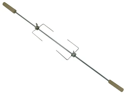 Spiedo universale per barbecue in acciaio con doppio manico in legno.
