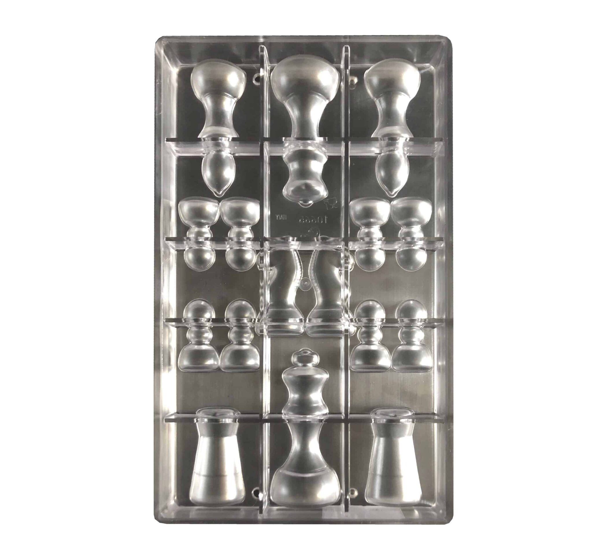 Lo Stampo 16 cioccolatini Pedine Scacchi è uno stampo Professionale in Policarbonato per la realizzazione di 16 praline a forma di scacchi.