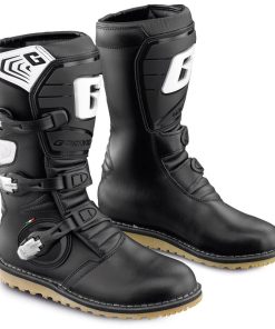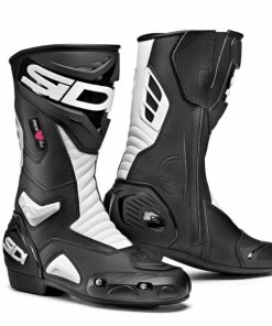 Stivali touring di media altezza. Tomaia realizzata in Micro-Synth e fodera interna con membrana High-Tex. Inserti in tessuto ventilato Air-Tech. Punta e tallone rinforzati. Inserti malleolo in D3O. Protezione paramarce in P.U. Inserto posteriore riflettente. Suola touring in gomma vulcanizzata.