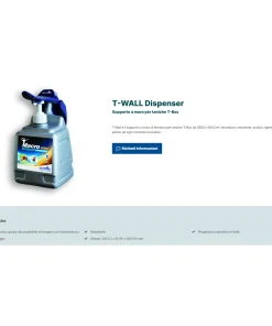 Supporto a muro T-WALL per dispenser con dosatore T-Box di saponi liquidi e creme gel Nettuno.