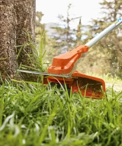 Decespugliatore a batteria con design moderno per la cura dei prati e dei bordi. Diametro di taglio 350 mm, impugnatura di comando ergonomica con regolazione del regime, impugnatura circolare, robusta asta in alluminio, archetto distanziatore per lo sfalcio attorno ad ostacoli come alberi e cespugli. Testina falciante AutoCut C 6-2, in alternativa PolyCut 6-2 con coltelli disponibili come accessori.