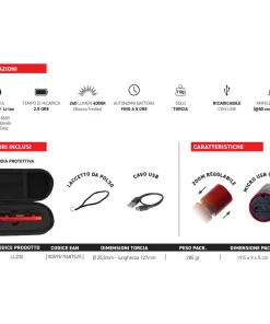 La batteria ricaricabile garantisce 5 ore di funzionamento alla stessa intensità.