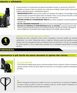 Il transpallet manuale GS rappresenta uno strumento facile da usare, economico e robusto per il trasporto di bancali.