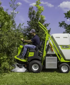 Grillo FD 500 è un trattore rasaerba idrostatico 2 ruote motrici con raggio di sterzo particolarmente stretto. Dispone di un piatto di taglio frontale da 113 cm e di un contenitore per la raccolta dell’erba con scarico rialzato a 190 cm di altezza e 15 cm di sbalzo.
