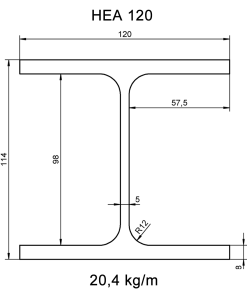 Trave HEA in acciaio comune al carbonio (Ferro) ad H ad ali larghe e parallele. Serie leggera.