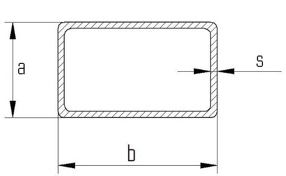 Tubo rettangolare nero, saldato, formato a freddo, 100x60x2 mm, in acciaio al carbonio in qualità S235JRr.