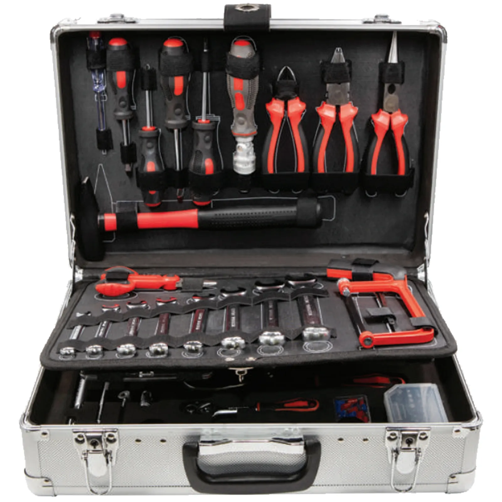 Questa valigetta è progettata per offrire una vasta gamma di attrezzi, coprendo tutte le esigenze di lavoro e riparazione, sia per uso domestico che professionale.