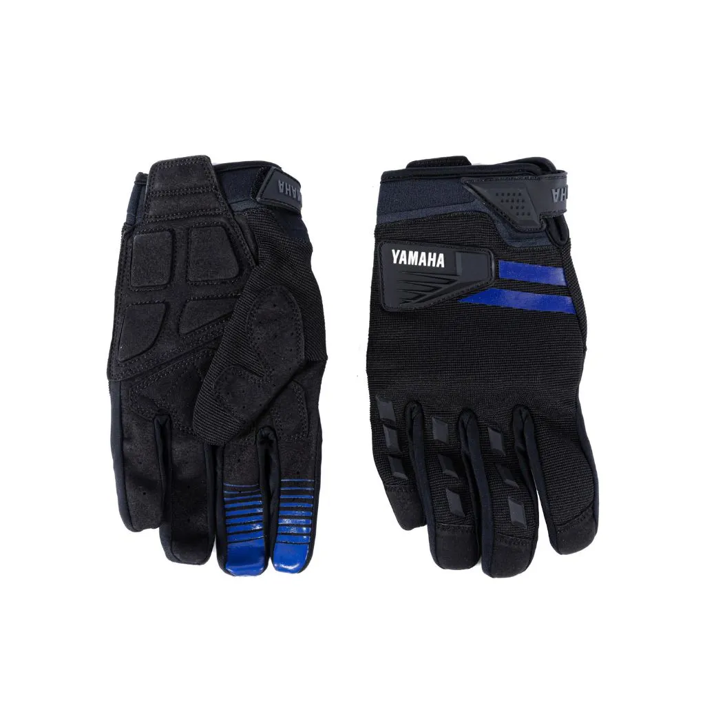 I guanti Enduro da uomo sono un must per le selvagge avventure fuoristrada e offrono protezione, ventilazione e comfort. La combinazione flessibile di tre tessuti neri garantisce una facile manovrabilità e agilità, con protezione rinforzata per i palmi e le nocche che non frena i movimenti. Il pollice rinforzato migliora la presa del manubrio e il livello di comfort, con il classico logo Yamaha e le strisce racing blue che aggiungono un giocoso tocco di colore.