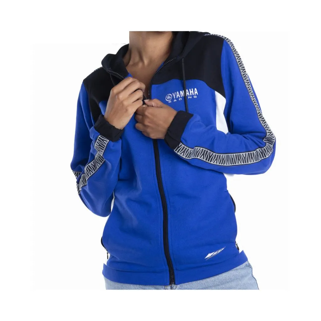 Colorata, comoda e facile da indossare, la felpa con cappuccio Paddock Blue da uomo è un capo streetwear molto casual, facile da indossare tutti i giorni. Realizzato in cotone e poliestere con finitura in french terry, blocchi di colore Racing Blue, bianco e nero, completano il look con fascia in stile retrò lungo le braccia e le spalle. Cappuccio foderato con cordino, orlo a costine e polsini elasticizzati per un comfort in qualsiasi condizione atmosferica, e con l’iconico marchio Yamaha Racing.