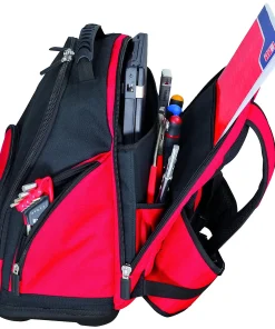 Lo zaino da lavoro è dotato di: cinturino pettorale regolabile, cinghie in vita imbottite per distribuire uniformemente il peso, vano interno portautensili, tasche laterali e frontali, portadocumenti interno. Con una portata massima di 12 Kg, lo zaino ha la tasca posteriore può contenere Notebook di dimensioni L:340 mm – H:240 mm.