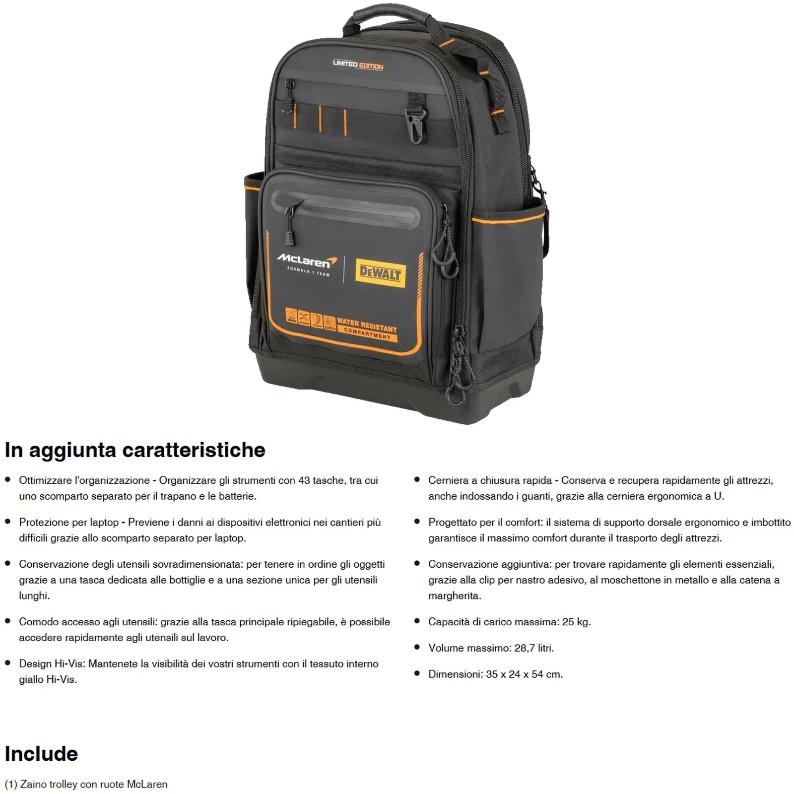 Zaino trolley con ruote McLaren F1 Team Limited Edition modello DWST60101-9
