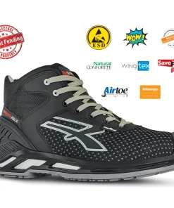 Scarpe Antinfortunistiche Basse in Pelle da Lavoro U-POWER Linea Red 360 Nere da Uomo Donna RUSH S3